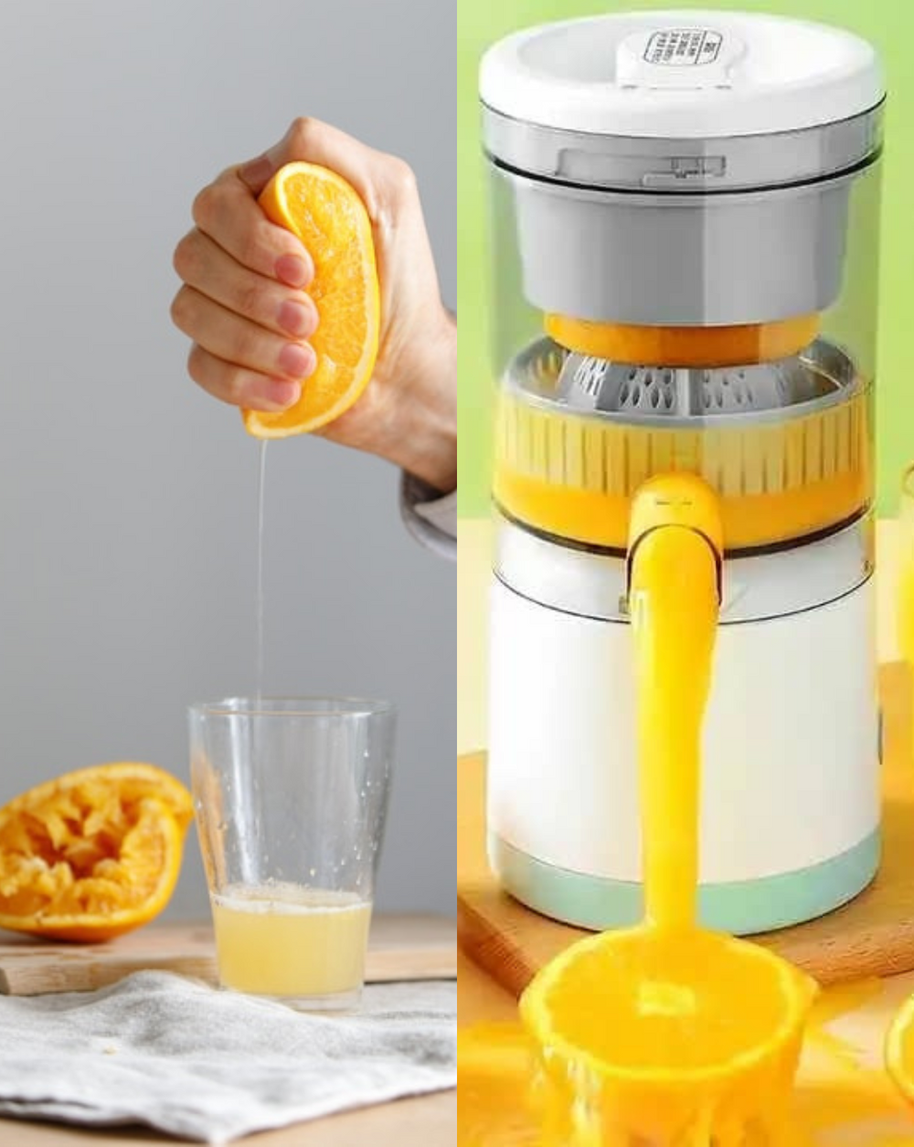 Oui, notre presse-agrumes électrique 🍊 est idéal pour tous vos jus d’agrumes préférés : orange, citron, pamplemousse, mandarine…